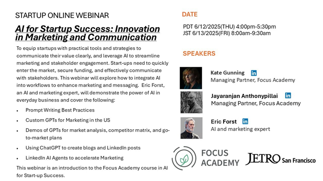 【ウェビナー】 AI for Startup Success: Innovation in Marketing and Communication