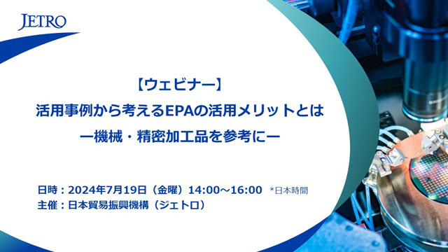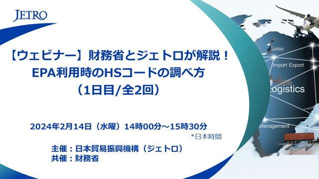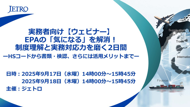 実務者向け【ウェビナー】EPAの「気になる」を解消!制度理解と実務対応力を磨く2日間 ーHSコードから書類・検認、さらには活用メリットまでー