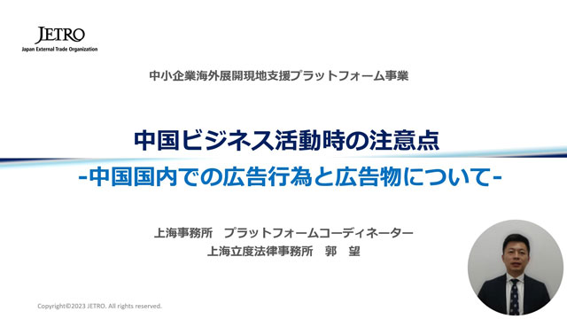 ジェトロ北京進出企業支援ウェビナー【第一部】「中国環境規制はメリハリある方式へ ―VOC等大気規制、排出許可、産廃を中心に―」、【第二部】「日系企業における環境規制への取り組みと具体的対策」