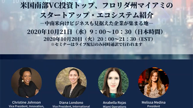 米国南部VC投資トップ、フロリダ州マイアミのスタートアップ・エコシステム紹介ウェビナー -中南米向けビジネスも見据えた企業が集まる地-