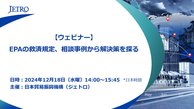 実務者向け【ウェビナー】EPAの「気になる」を解消!制度理解と実務対応力を磨く2日間 ーHSコードから書類・検認、さらには活用メリットまでー
