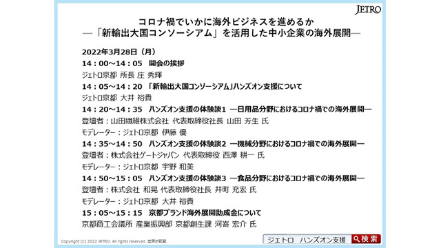 講師:ジェトロ海外ビジネスサポートセンター 貿易投資相談課 アドバイザー 中山 元司 他