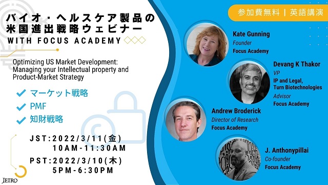 【ウェビナー】 Navigating the Current Landscape of Research and Commercialization in the U.S. (Bio, Health and Ag/Food Tech)