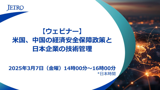【ウェビナー】米国、中国の経済安全保障政策と日本企業の技術管理